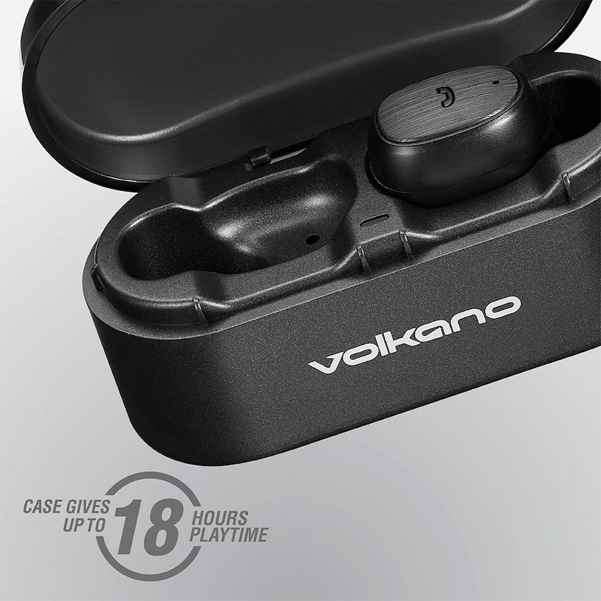 Volkano Virgo Series True Wireless Earphones – Black Siri / Google Assistant Metallic Charging Case 15 Hour Playtime with Case