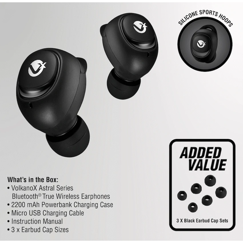 VolkanoX Astral Series True Wireless Earphones with Power Bank Charging Case – Black