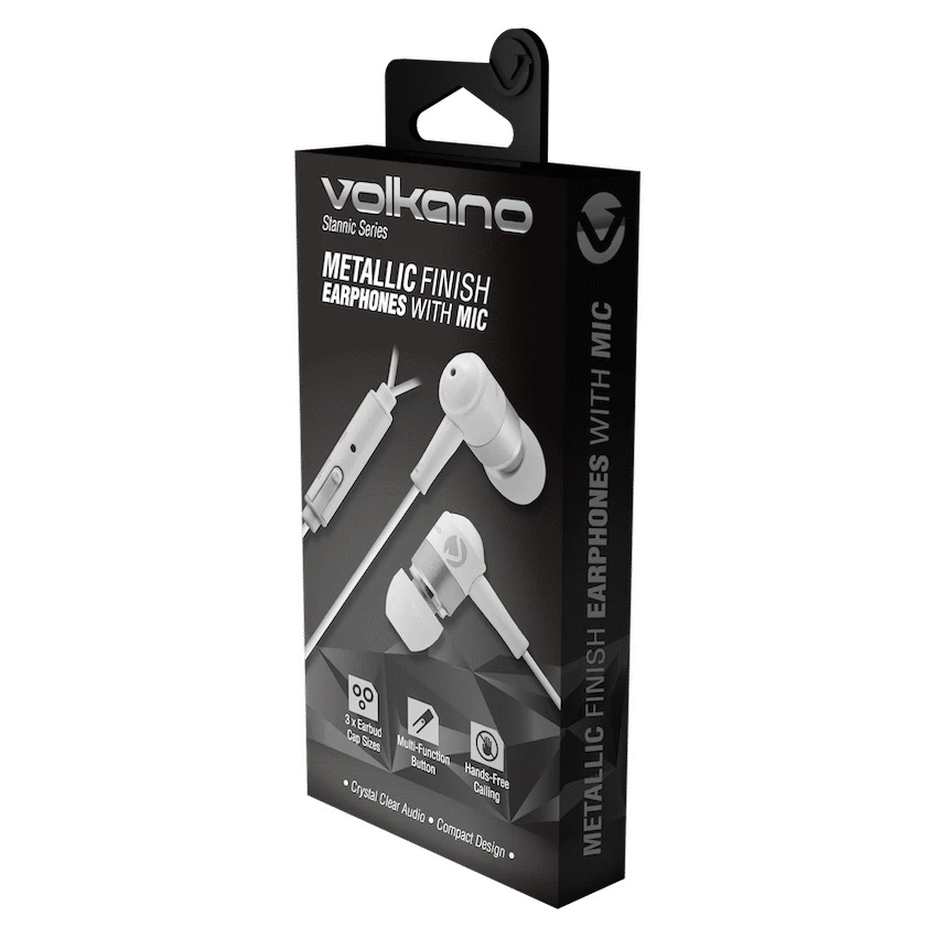 Volkano Earphones with Mic – STANNIC SERIES – White