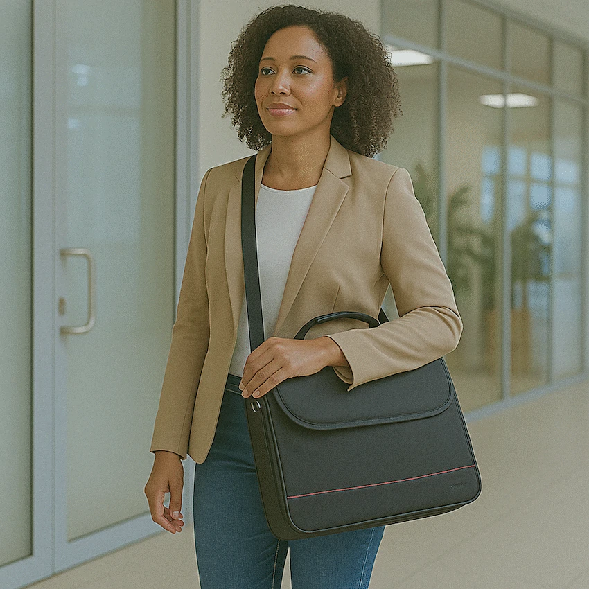 This laptop shoulder bag is the perfect combination of functionality, convenience, and style, designed to carry laptops up to 15.6 inches safely in a padded compartment. It features sturdy carry handles and an adjustable shoulder strap for versatile, comfortable carrying options, whether commuting, traveling, or running errands. Multiple internal and external pockets provide organized storage for chargers, documents, pens, and other essentials, keeping everything within easy reach. Crafted from durable, high-quality materials, the bag is lightweight yet hardwearing, offering long-lasting reliability while maintaining a sleek, professional appearance that complements both casual and business attire.