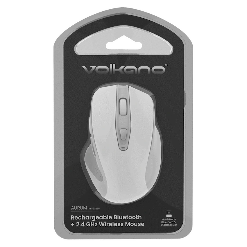 Elevate your productivity and comfort with the Volkano Aurum Series Wireless Mouse, a versatile and stylish companion designed for modern multitaskers. Whether you’re navigating spreadsheets, editing documents, or streaming through presentations, this mouse offers two reliable wireless modes—Bluetooth 5.2 for cable-free flexibility and 2.4 GHz via USB receiver for plug-and-play convenience. A built-in rechargeable battery ensures you say goodbye to disposable batteries—just plug in, charge, and carry on.