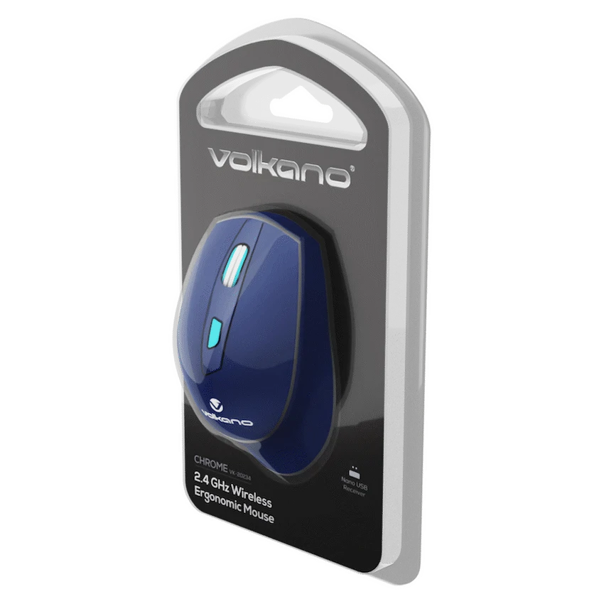 Volkano Chrome Series Wireless Mouse – Blue, Customisable DPI (1000‑1600), ambidextrous comfort, and plug‑and‑play simplicity