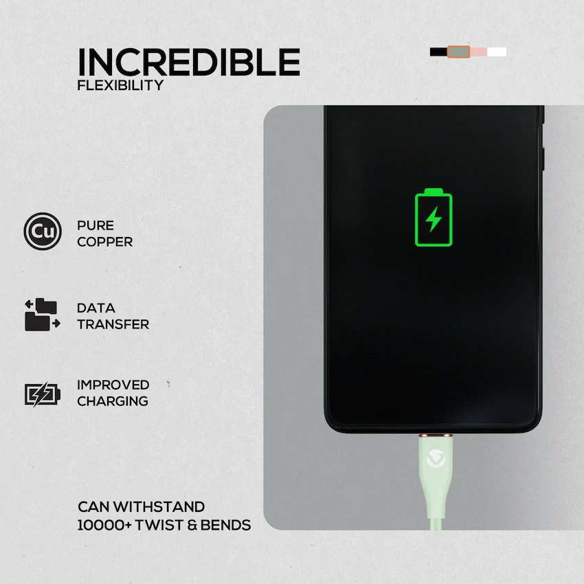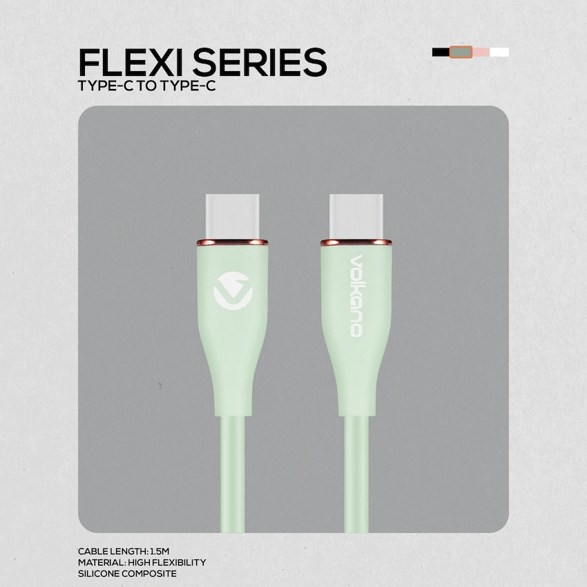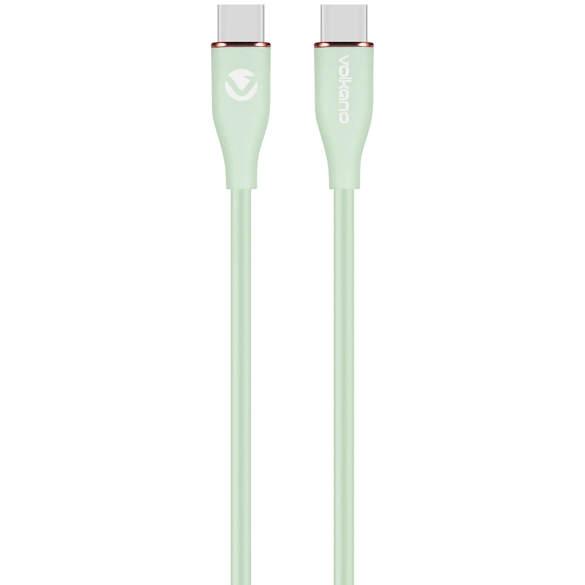 Volkano Flexi Series Type-C to Type-C 1.5M 60W – Green Charge plus data transfer 60Watt high power Silicone Material 1.5m length