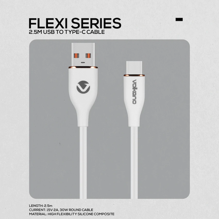 Volkano Flexi Series USB to Type-C 2.5m 30w – White