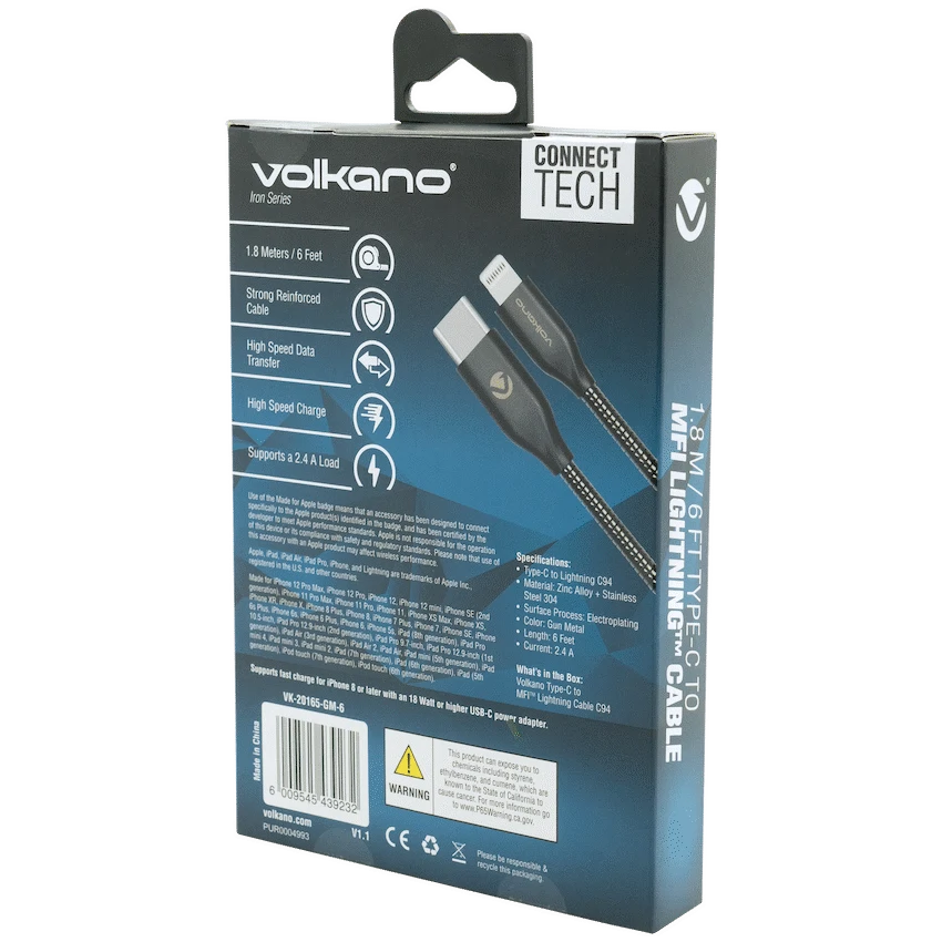 Volkano Iron Series Type-C to MFI Lightning Cable 6ft – Gun Metal