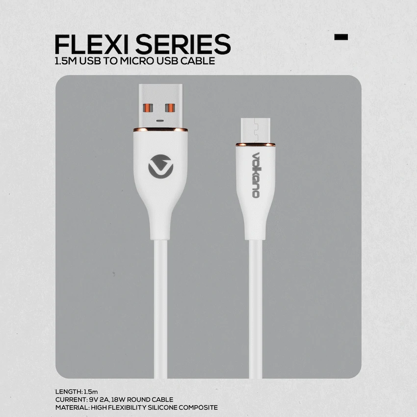 Volkano Flexi Series USB to Micro USB 1.5M 18W – White
