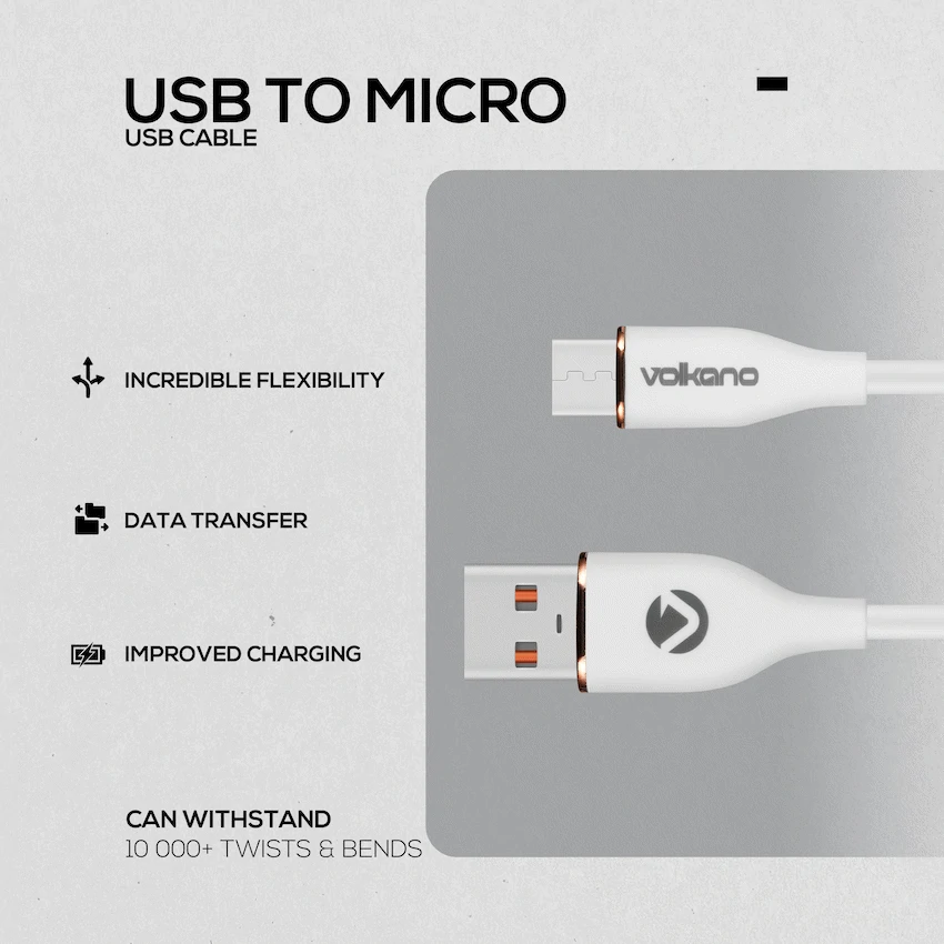Volkano Flexi Series USB to Micro USB 1.5m 18w – White