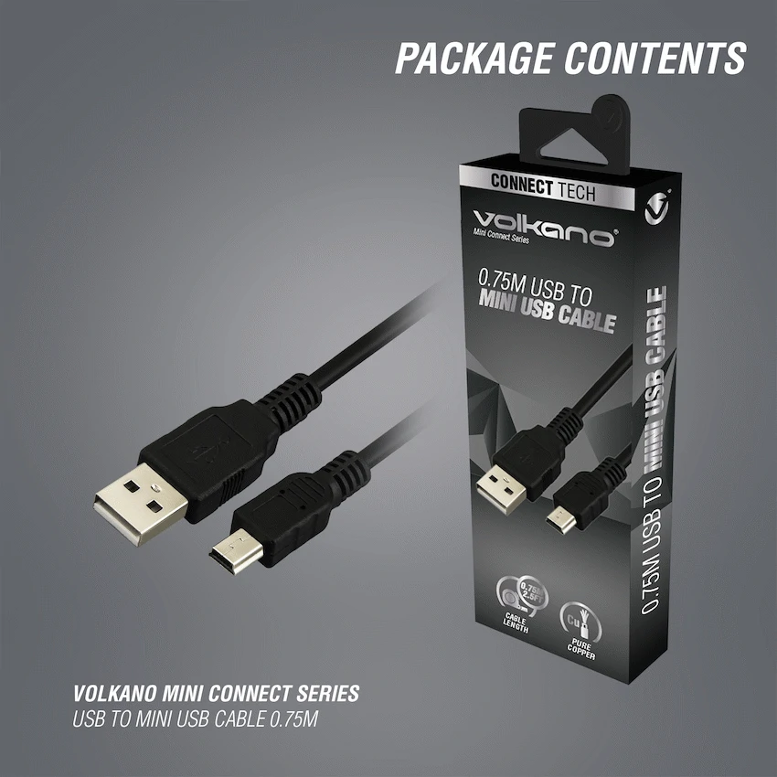 Volkano Mini Connect Series USB to Mini USB Cable 0.75m