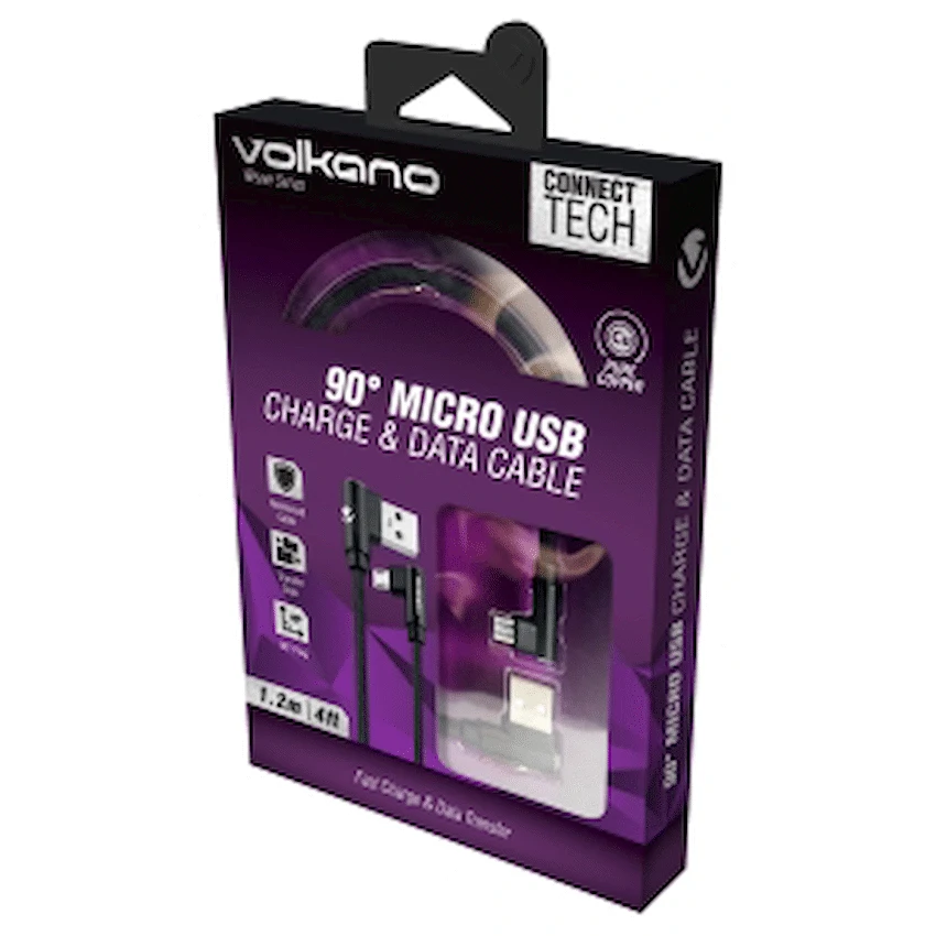 Volkano Weave Series Fabric Braided 90° Micro USB Cable 1.2m – Black