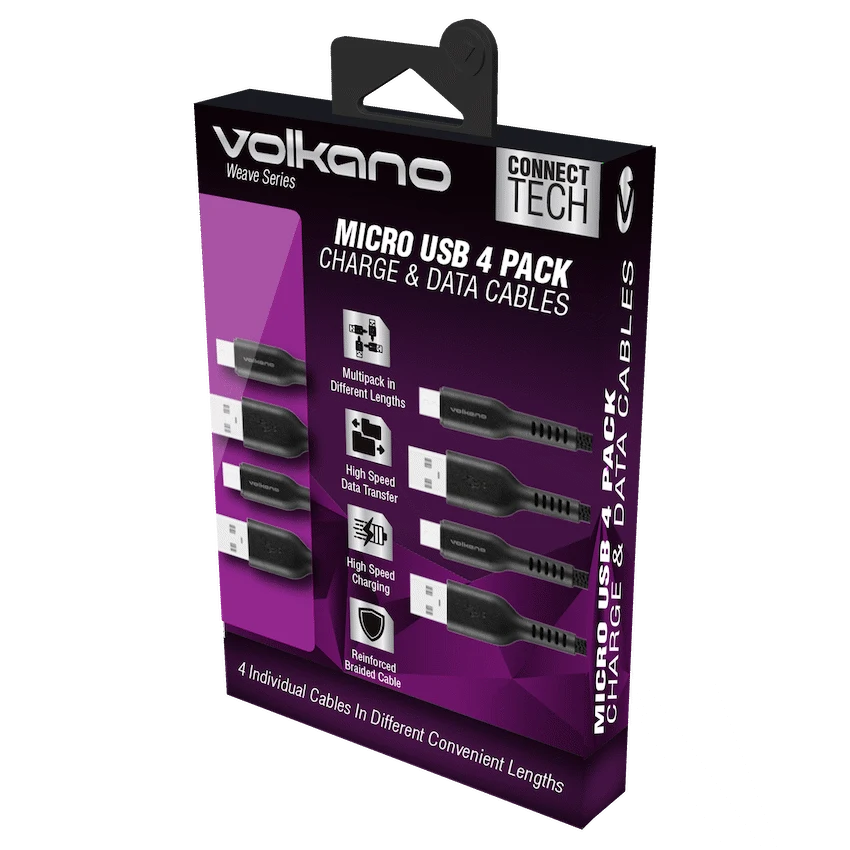 Volkano Weave Series Micro USB 4 Cable Pack – Black