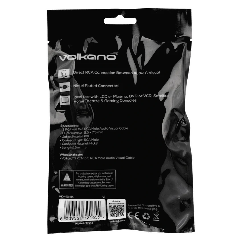 Enjoy clear audio and video transfer with the Volkano 3 RCA to 3 RCA Cable 1.5m, designed for seamless connectivity between your AV devices. Whether you’re hooking up an older TV, DVD player, home theatre system, or gaming console, this 3 RCA male to male cable ensures stable performance and minimal signal loss.