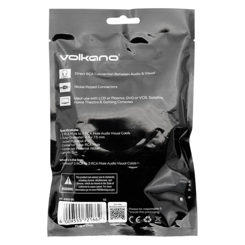 Volkano 3 RCA To 3 RCA Cable 3m Nicklel Plated connectors