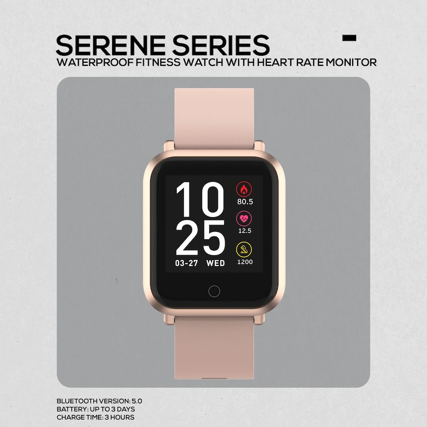 Compatible with Android & Apple, the Serene Series Fitmess Smart Watch features a Heart Rate Monitor, Cellphone Notifications & a Pedometer. Water and dust resistant with a hypo-allergenic strap, it’s ready to join you on your workouts and activities.
